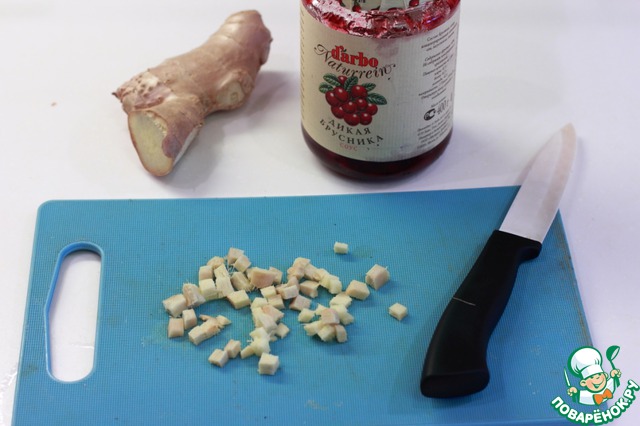 • Маленький кусочек корня имбиря очистить и нарезать на небольшие кубики.