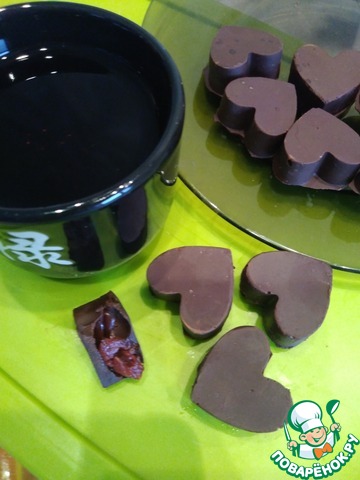 Спасибо, за очередной чудесный рецепт! Каюсь... Запихала я в начинку вишню на которой муж свои алкогольные творения настаивал.. Жаль... не влезала она у меня в форму... Красоты не получилось. Ладно, зато все съели мы.. Вкусно... И весь день веселые... )))) Огромное спасибо за урок темперирования шоколада.. и правда не белеет.. а может не успел....)))
