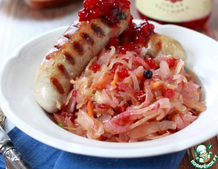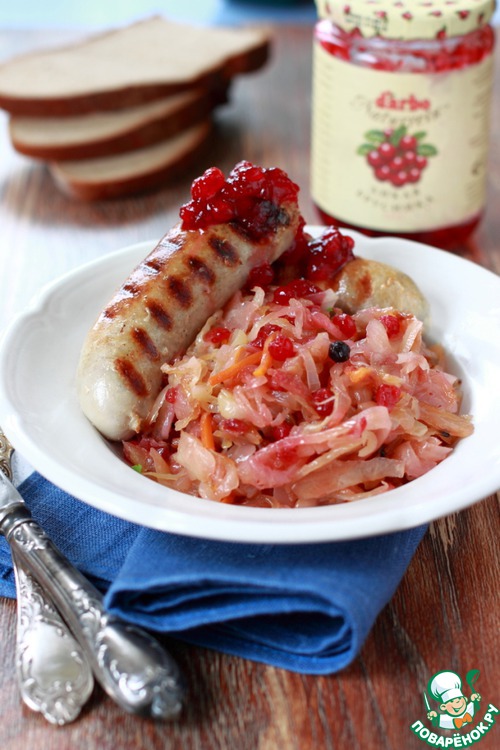 Колбаски, капуста и брусничный соус - идеальное сочетание, классика кулинарии.