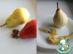 Груши очистить от кожицы, сохранив плодоножку. Никакого особого смысла в этом нет, просто с плодоножкой груша выглядит симпатичней