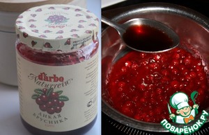 Далее берем соус "Дикая брусника" от D’arbo" и оставшееся в кастрюле вино (у меня 10-12 ст. ложек) и увариваем все вместе, чтобы слегка загустело. Это будет наш соус!