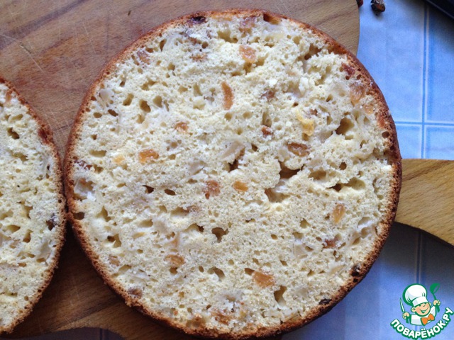 После того, как он остыл, аккуратно и ровно режем по горизонтали на две части.