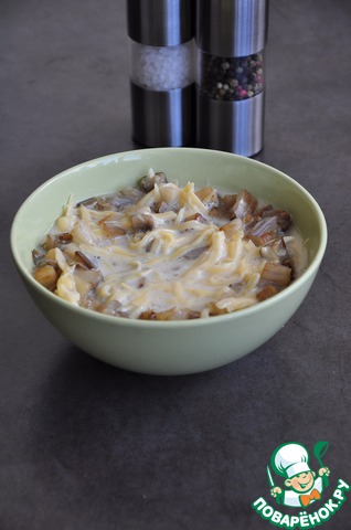 Натереть на терке сыр, добавить к молочной массе.