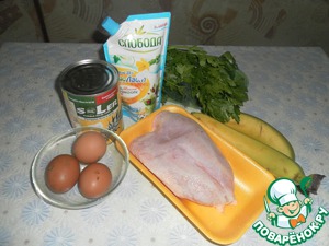 Я продолжаю начатую уже мной тему сочетания вкусов мяса курицы и фруктов. На этот раз предлагаю рецепт салатика, где мясо отлично гармонирует с бананом и ананасом. Готовлю этот салат ровно 10 лет, ни один праздник без него не обходится. Но сразу скажу: гостям он может понравится не всем, лишь тем, кто любит подобные сочетания. Мой муж относится к таким любителям, вот и вчера, когда я готовила салат для сайта, он, потирая руки и глядя на нарезки, сказал:"Как хорошо, что ты там зарегистрировалась, вот и мне от этого польза будет". Пусть от этого рецепта польза будет и вам!