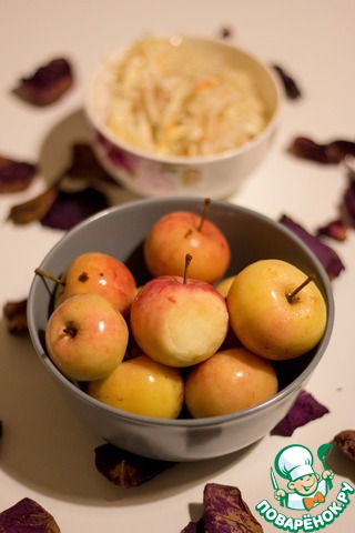 Эти яблоки я подавала с быстрой маринованной капустой по этому рецепту http://www.povarenok .ru/recipes/show/792 26/ (чтобы ссылка заработала, уберите пробел между цифрами)