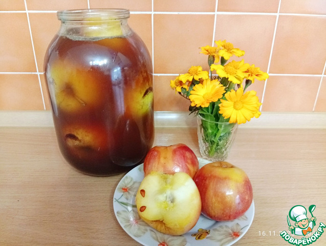Рецепт «Моченые яблоки с корицей, чабрецом и мятой»: