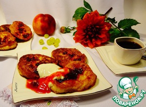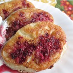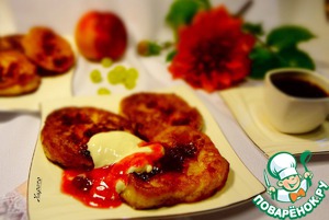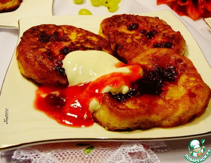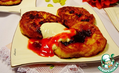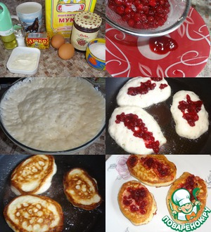 Рецепт «Оладьи с припёком под брусничным соусом»: