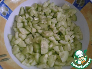 Огурец почистить, нарезать секторами, немного посолить - нижний слой.