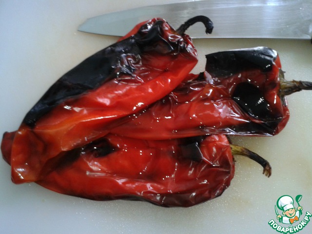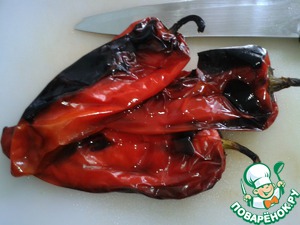 Перчик запечь в духовке в течение 25 мин., горячий положить в пакет, дать немного остыть.