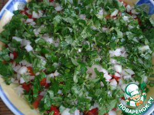 Петрушку режем мелко, укладываем сверху. Я взяла большее количество петрушки, но это чисто мои личные предпочтения.