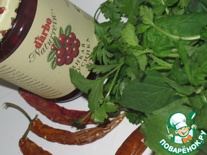 Рецепт «Брусничный соус с красным перцем и зеленью»: