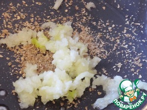 Прогреть на среднем огне около 5 минут. Пока чеснок не станет мягким. -