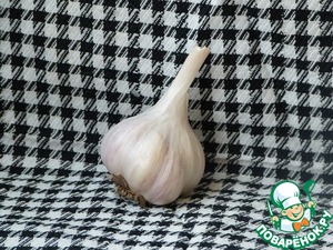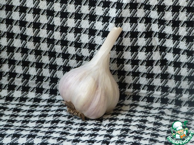 Почистить чеснок, приблизительно зубчиков 6-7. Зубчики разрезать вдоль, как бы длинными полосками.