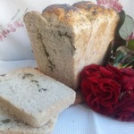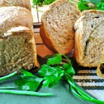 [+5]Отрезаешь кусочек- аромат!!!!, ц/з мука внесла свою интересность хлебу, а кусочки с травой- праздник прям на нашей улице)