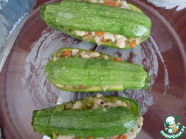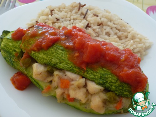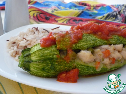 Рецепт «Кабачок, фаршированный курицей с овощами»: