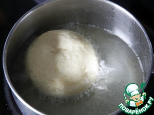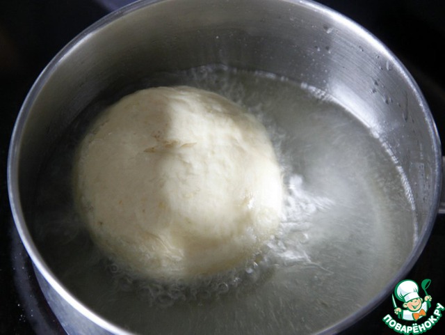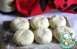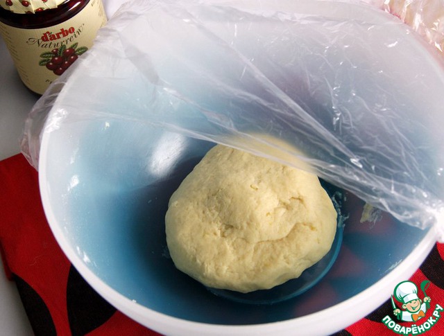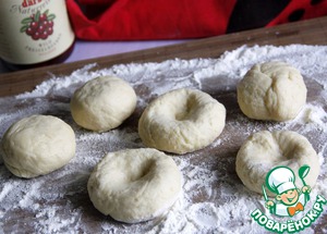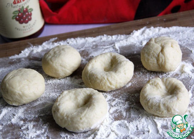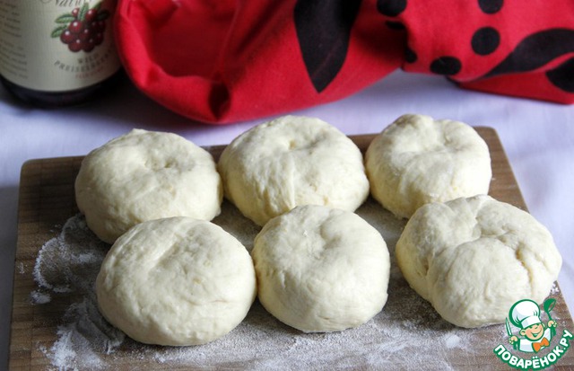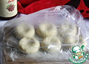 Скатать колобки, выложить на доску, присыпанную мукой, и в каждом из них сделать пальцами посередине углубление-вмятину