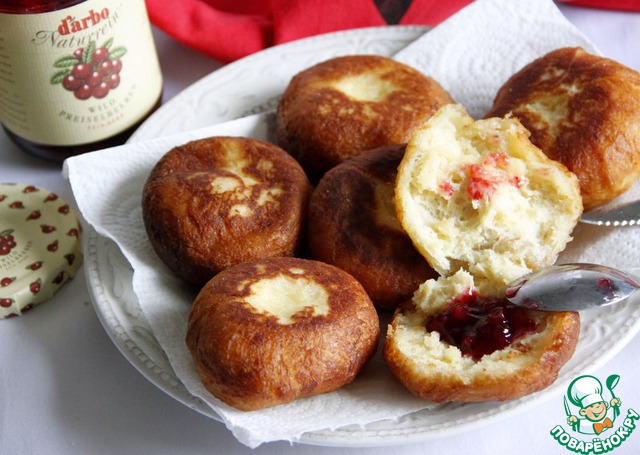 Немецкие крапфены очень похожи на русские жареные пончики. Но в германской кухне очень часто добавляется к сдобе немного овощей. В данном варианте в дрожжевое тесто добавлен отварной картофель. Сочетание сладковатого пончика с картофельным привкусом и кисловатого брусничного соуса D'arbo придаёт блюду свой необычный национальный колорит. Попробуйте! Это очень вкусно!