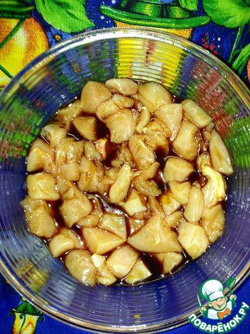 Далее заливаем курочку соевым соусом и отправляем в холодильник мариноваться минут на 40.