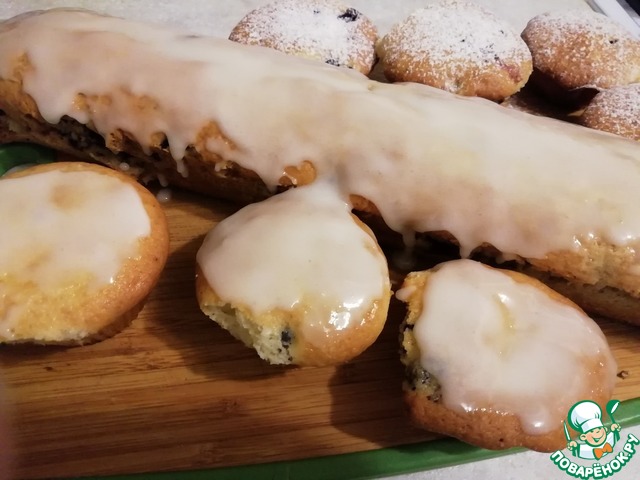 Готовый кекс посыпать сахарной пудрой. На мой вкус кексы нравится покрывать глазурью.