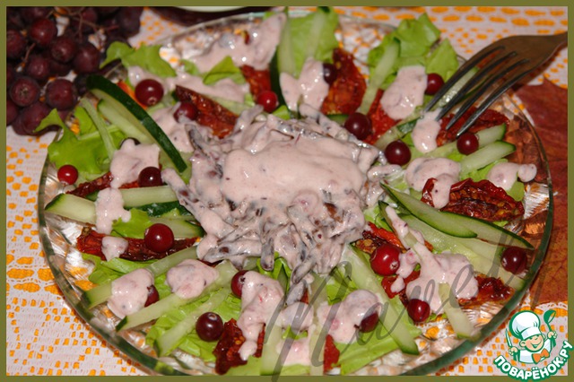 Рецепт "Салат с бастурмой и клюквенной заправкой":