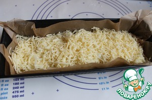 Когда тесто подошло, посыпаем сверху порезанным луком и тертым сыром. ставим в хорошо разогретую духовку до 180 градусов на 40 минут. Я накрыла тесто фольгой, чтобы сыр сразу не подгорел, через 30 минут убрала.