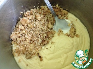 В другую часть теста добавляем толченый орех и перемешиваем. Я прокатала его скалкой, не надо его мельчить