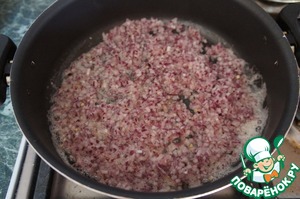 Разогреть в большой сковороде 2 ст. л. растительного масла и обжарить репчатый лук 5 мин.
