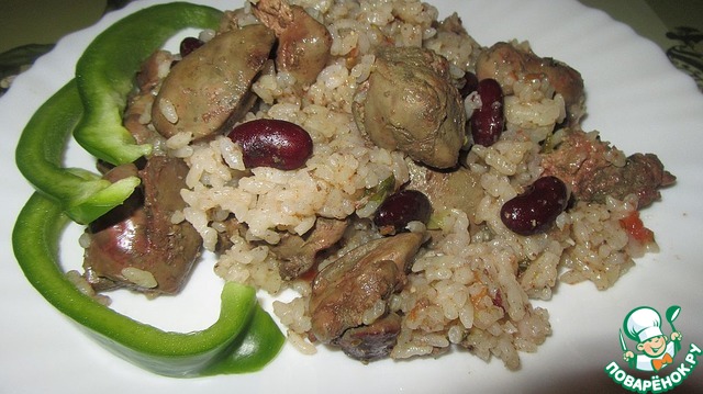"Грязный" рис - блюдо каджунской кухни. Такое название это каджунское блюдо получило вовсе не потому, что в Новом Орлеане рис не моют. Моют и очень тщательно! Просто, по мнению новоорлеанцев, разваренная черная фасоль и кусочки обжаренной куриной печенки придают рису несколько неопрятный - но при этом очень аппетитный вид.