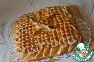 Смазать пирог желтком, взбитым с 1 ч. л. воды.