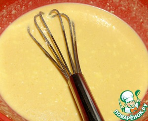 Налить молоко, насыпать муку и перемешать до однородной консистенции.