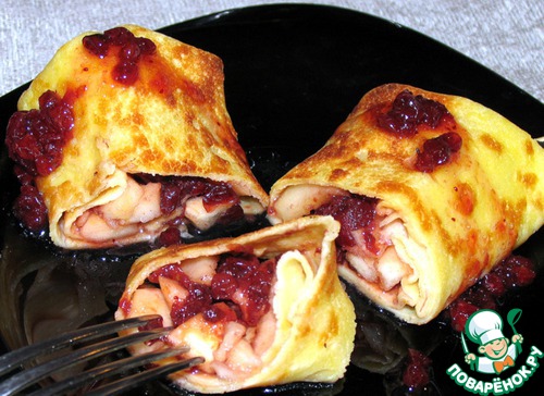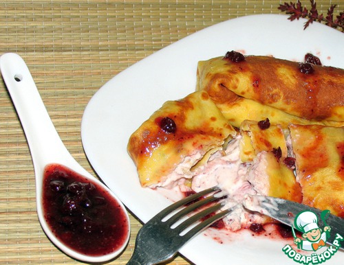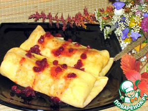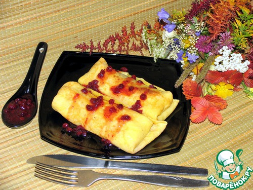 Рецепт «Налистники с творогом и брусничным соуом»: