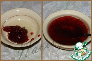 Для маринада смешиваем половину столовой ложки клюквенного соуса D'arbo, 1 чайную ложку растительного масла и 50 мл. маринада с винным уксусом (со второго шага)