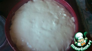 Добавить в тесто муку и аккуратно перемешать, консистенция получается, как у сметаны