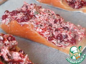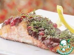 Рецепт «Запеченный лосось с укропом и брусничным соусом»: