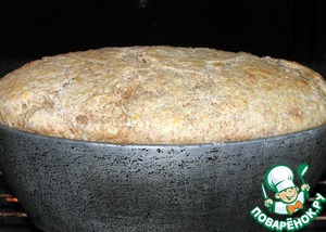 Для выпечки хлеба я взяла "древнюю" - от бабушки или прабабушки - утятницу. Дно и края утятницы смазала подсолнечным маслом и выложила тесто. Поставила в духовку на самую маленькую температуру для поднятия. Как только тесто поднялось, включила духовку на 200 градусов. Через 10 минут сделала температуру 180.