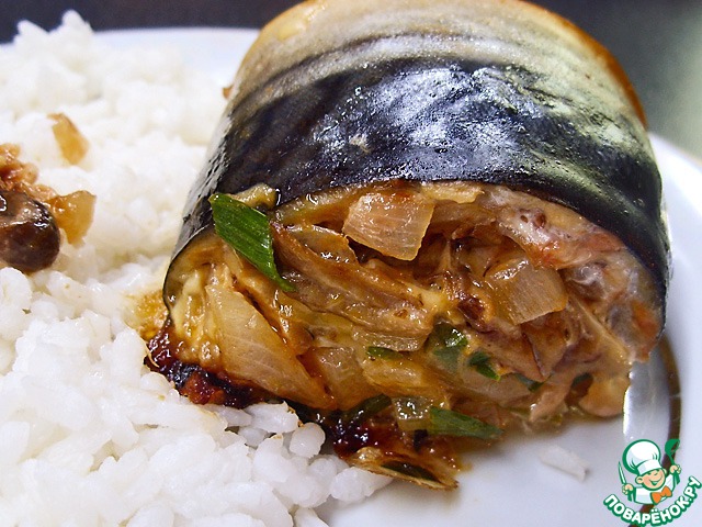 Рецепт «Рулет из скумбрии с луком и грибами»: