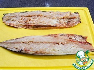 • Размораживаем скумбрию. Отрезаем голову. Потрошим, моем.