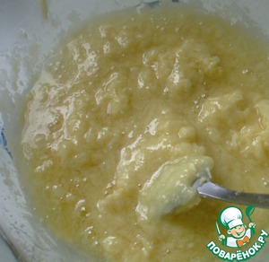 Сахар взбить с растительным маслом, чтобы он немного растворился.