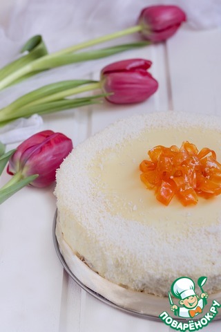 Вылить мусс на морковный корж. Работаем быстро, постучать формой по столу для равномерного распределения мусса несколько раз.