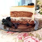 [+5]Целым не успела запечатлеть, вот только кусочек. Долго присматривалась, читала комментарии, и решила делать с медовым бисквитом, чтоб поддержать медовый мусс, сверху заливала виноградным желе с медово-мускатным привкусом. Получился очень нежный, гармоничный торт. Подачу дополняли черной малинкой! Единственное мне не очень повезло с орехами, попались не очень свежие. и измельчила крупновато, кусочки выбивались из нежной текстуры, на будущее учту, однозначно буду повторять! Восхитительный торт!!!