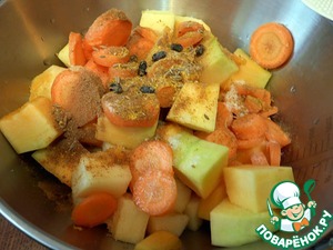 Смешать приправы (зиру, паприку, карри, корицу, имбирь, барбарис).