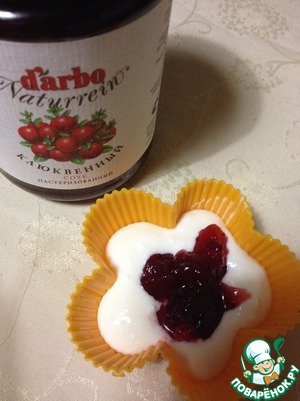 Заполнить форму на 1/3 творожной массой, на нее выложить клюквенный соус от Дарбо