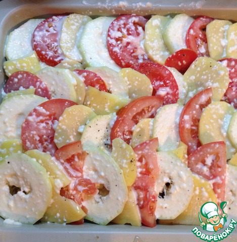 Закончился сезон сбора овощей на дачных участках и, по результатам сего, у всех наверняка осталось много пока не пристроенных овощей. Так и я собрала все, что было, и получилась такая вот запеканка. Именно такого рецепта не нашла, поэтому решила добавить.