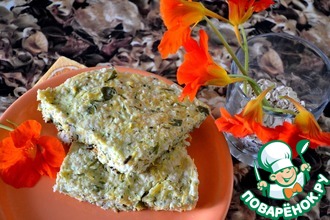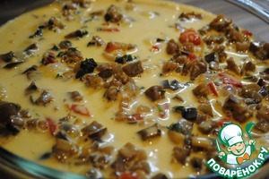 Взбиваем 5 яиц, 5 ст. л. муки, 180 мл. молока. Заливаем этой смесью овощи.