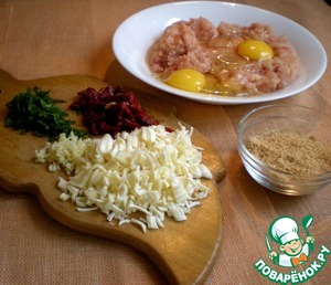 Ингредиенты для «Мясная запеканка с сулугуни и вялеными помидорами»: