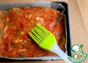 Если Вы хотите, чтобы готовая запеканка имела приятный «загар», предлагаю сделать следующее: смешиваем 2 чайные ложки оливкового или постного масла с 2 чайными ложками паприки и обильно смазываем стенки формы для выпечки и верх запеканки. Выкладываем массу в форму и в духовку на 35 минут, при температуре 200*C.