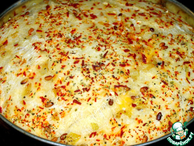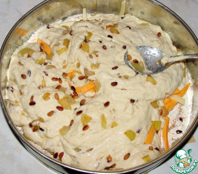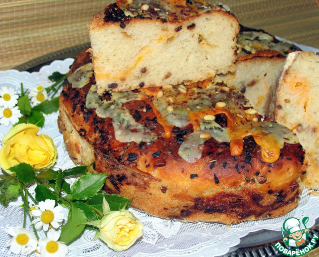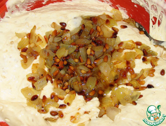 Рецепт «Хлеб-сырно луковый с кедровыми орешками»: