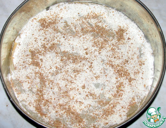 Для выпекания хлеба я взяла разъёмную форму. На стеклянное дно положила пергаментную бумагу и посыпала немного мукой и отрубями.