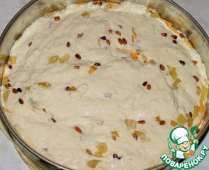 Поставила форму в духовку при температуре 50 градусов для поднятия теста. -