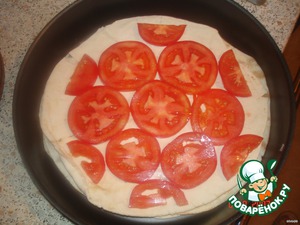 На лаваш кладем помидор, порезанный тонкими кружочками. Накрываем лавашем.